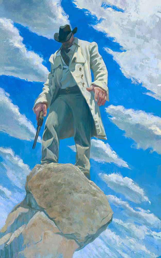 His work captures rich moods by combining the free brushwork of an expressive artist combined with the lighting and framing of a seasoned Hollywood cinematographer. Drawn to rugged and romantic film noir characters, Leonard merges technically brilliant figurative painting with a finely crafted cinematic atmosphere, creating snapshot moments full of narrative possibilities.