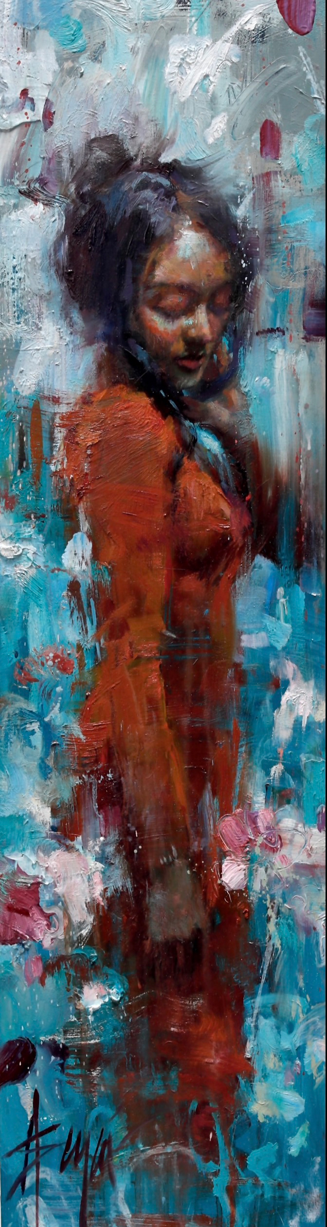 Contemporary painter Henry Asencio is a master of painting the female form. He is naturally drawn to paint the human figure for its timeless sensitivity. His work blends classical ideas of figurative painting with a unique contemporary style, reminiscent of the Impressionists. He works with either live models or photographs, seeking to portray his female figures as strong and contemplative. He paints in a very aggressive and loose style, often painting with a palette knife. The artist states, "Painting for me is very cathartic, and is the most articulate way for me to express my passion and internal dialogues." Merging introspection and visual spectacle, Henry Asencio's personal investigations of femininity, spirituality, and abstraction possess the power to transform today's ideals of elegance and contemporary sensuality.