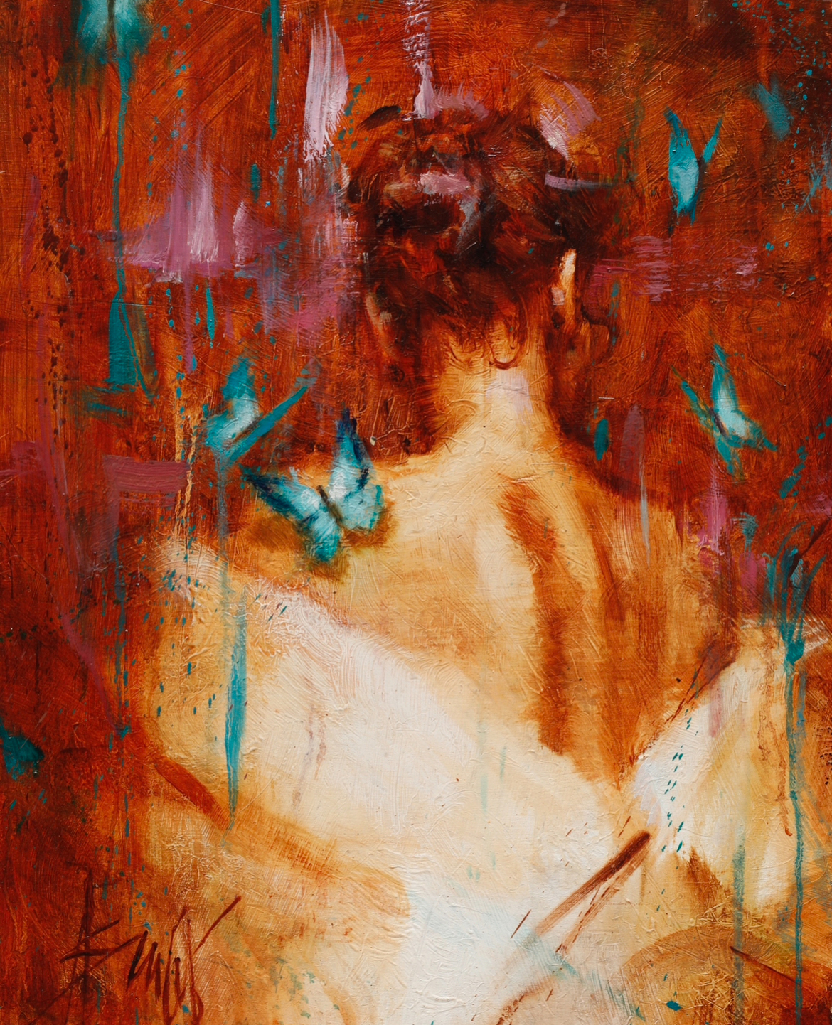 Contemporary painter Henry Asencio is a master of painting the female form. He is naturally drawn to paint the human figure for its timeless sensitivity. His work blends classical ideas of figurative painting with a unique contemporary style, reminiscent of the Impressionists. He works with either live models or photographs, seeking to portray his female figures as strong and contemplative. He paints in a very aggressive and loose style, often painting with a palette knife. The artist states, "Painting for me is very cathartic, and is the most articulate way for me to express my passion and internal dialogues." Merging introspection and visual spectacle, Henry Asencio's personal investigations of femininity, spirituality, and abstraction possess the power to transform today's ideals of elegance and contemporary sensuality.