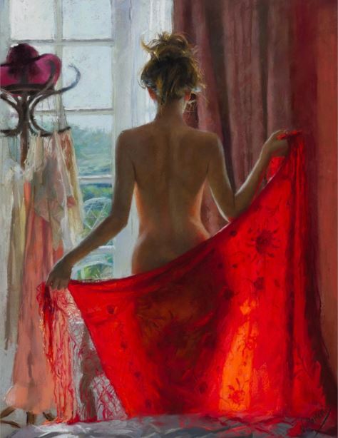 From a very early age, I was attracted to the inner world of women, it’s a kind of mystery that makes me feel a great fascination. I don’t believe in art which is too conceptual nor in virtuosity. Art without emotional communication is very respectable but I’m not interested in this. The fact that iconographically my paintings have a marked “retro”or anachronistic flavour, it is not due to a desire to revive old times but to the fact that the functional clothing style imposed since long time ago until now, is not at all attractive to me from a plastic point of view.