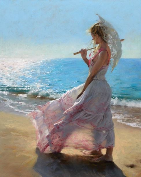 From a very early age, I was attracted to the inner world of women, it’s a kind of mystery that makes me feel a great fascination. I don’t believe in art which is too conceptual nor in virtuosity. Art without emotional communication is very respectable but I’m not interested in this. The fact that iconographically my paintings have a marked “retro”or anachronistic flavour, it is not due to a desire to revive old times but to the fact that the functional clothing style imposed since long time ago until now, is not at all attractive to me from a plastic point of view.