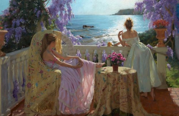 From a very early age, I was attracted to the inner world of women, it’s a kind of mystery that makes me feel a great fascination. I don’t believe in art which is too conceptual nor in virtuosity. Art without emotional communication is very respectable but I’m not interested in this. The fact that iconographically my paintings have a marked “retro”or anachronistic flavour, it is not due to a desire to revive old times but to the fact that the functional clothing style imposed since long time ago until now, is not at all attractive to me from a plastic point of view.