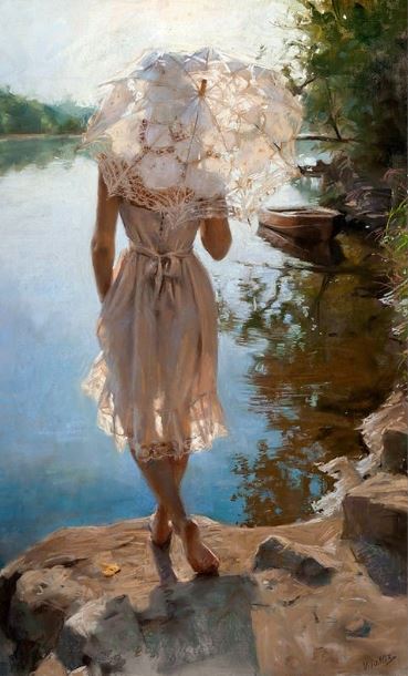 From a very early age, I was attracted to the inner world of women, it’s a kind of mystery that makes me feel a great fascination. I don’t believe in art which is too conceptual nor in virtuosity. Art without emotional communication is very respectable but I’m not interested in this. The fact that iconographically my paintings have a marked “retro”or anachronistic flavour, it is not due to a desire to revive old times but to the fact that the functional clothing style imposed since long time ago until now, is not at all attractive to me from a plastic point of view.