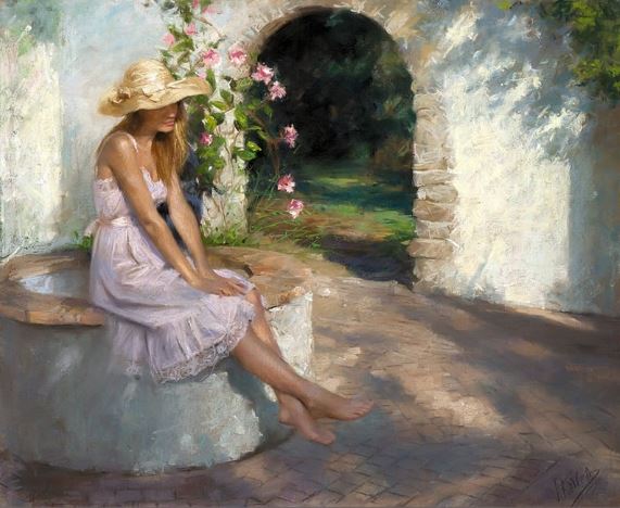 From a very early age, I was attracted to the inner world of women, it’s a kind of mystery that makes me feel a great fascination. I don’t believe in art which is too conceptual nor in virtuosity. Art without emotional communication is very respectable but I’m not interested in this. The fact that iconographically my paintings have a marked “retro”or anachronistic flavour, it is not due to a desire to revive old times but to the fact that the functional clothing style imposed since long time ago until now, is not at all attractive to me from a plastic point of view.